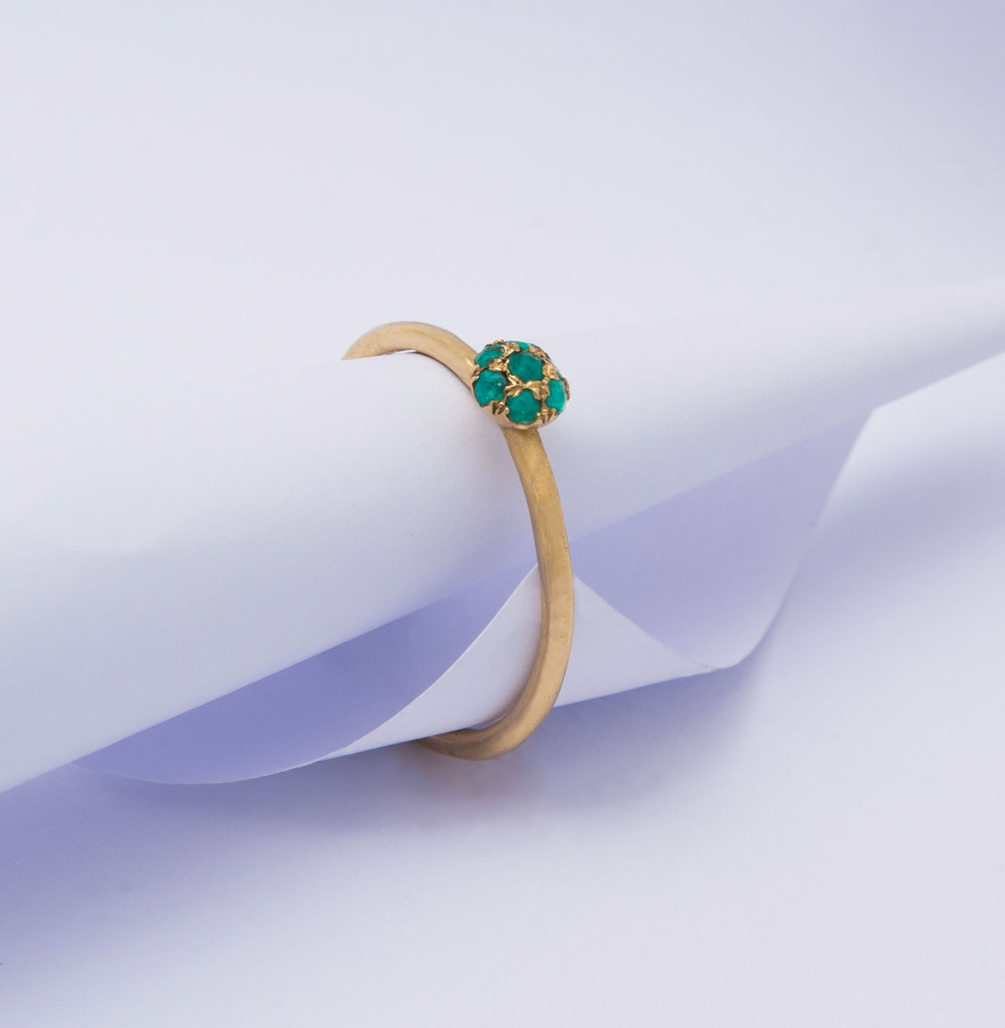 Home טבעות טבעת זהב כדור משובץ 7 אמרלדים