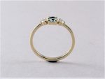 טבעת זהב 14 קארט משובצת אבן מרכזית טורמלין כחולה ירקרקה אובלית ומשני צדיה יהלומים