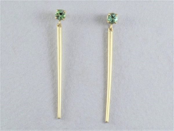 עגילי זהב מאורכים משובצים אמרלד