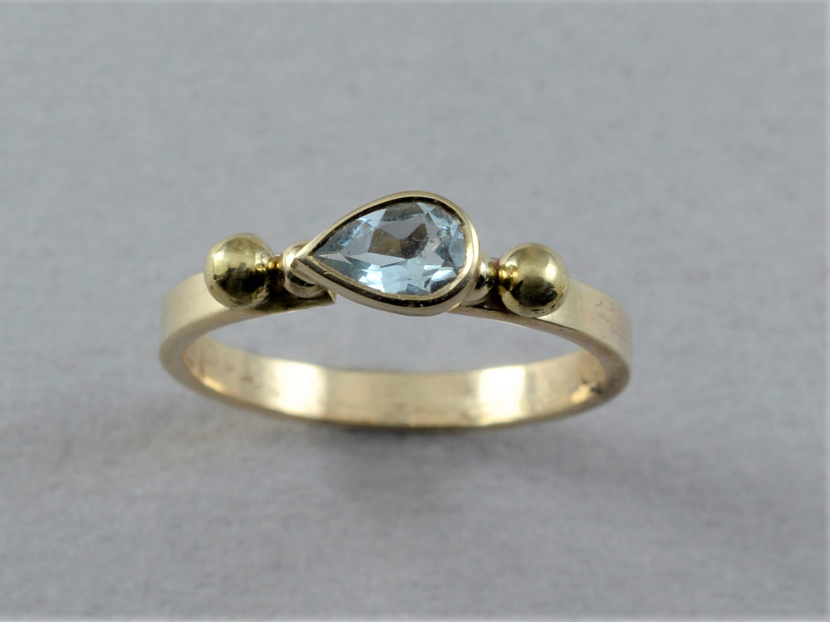 טבעת זהב 14 קארט משובצת בלו טופז בצורת טיפה