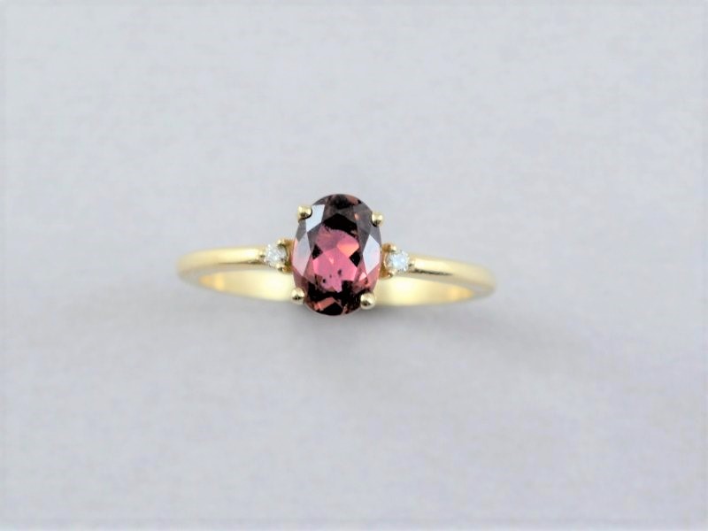 טבעת זהב משובצת אבן מרכזית אובלית רודולייט ולצדדיה יהלומים