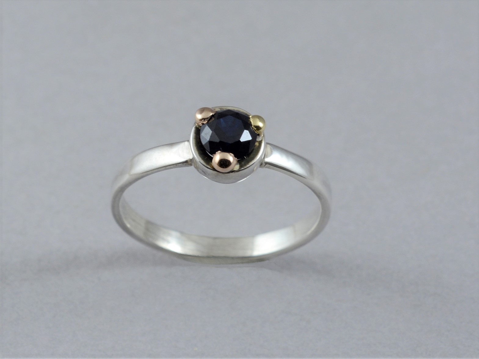 טבעת כסף וזהב 14 קארט משובצת אבן ספיר