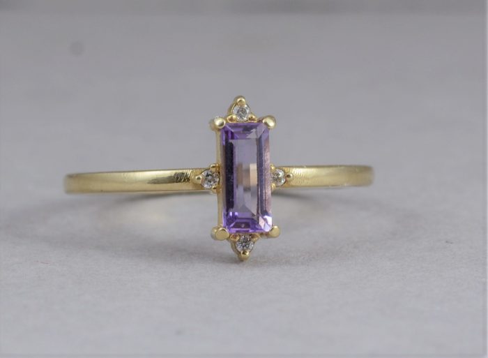טבעת זהב משובצת אמטיסט בגט ויהלומים