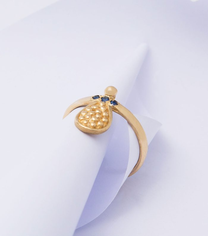 טבעת זהב אורינטאלית משובצת ספירים