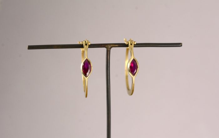 עגילי זהב 14 קראט משובצים רובי