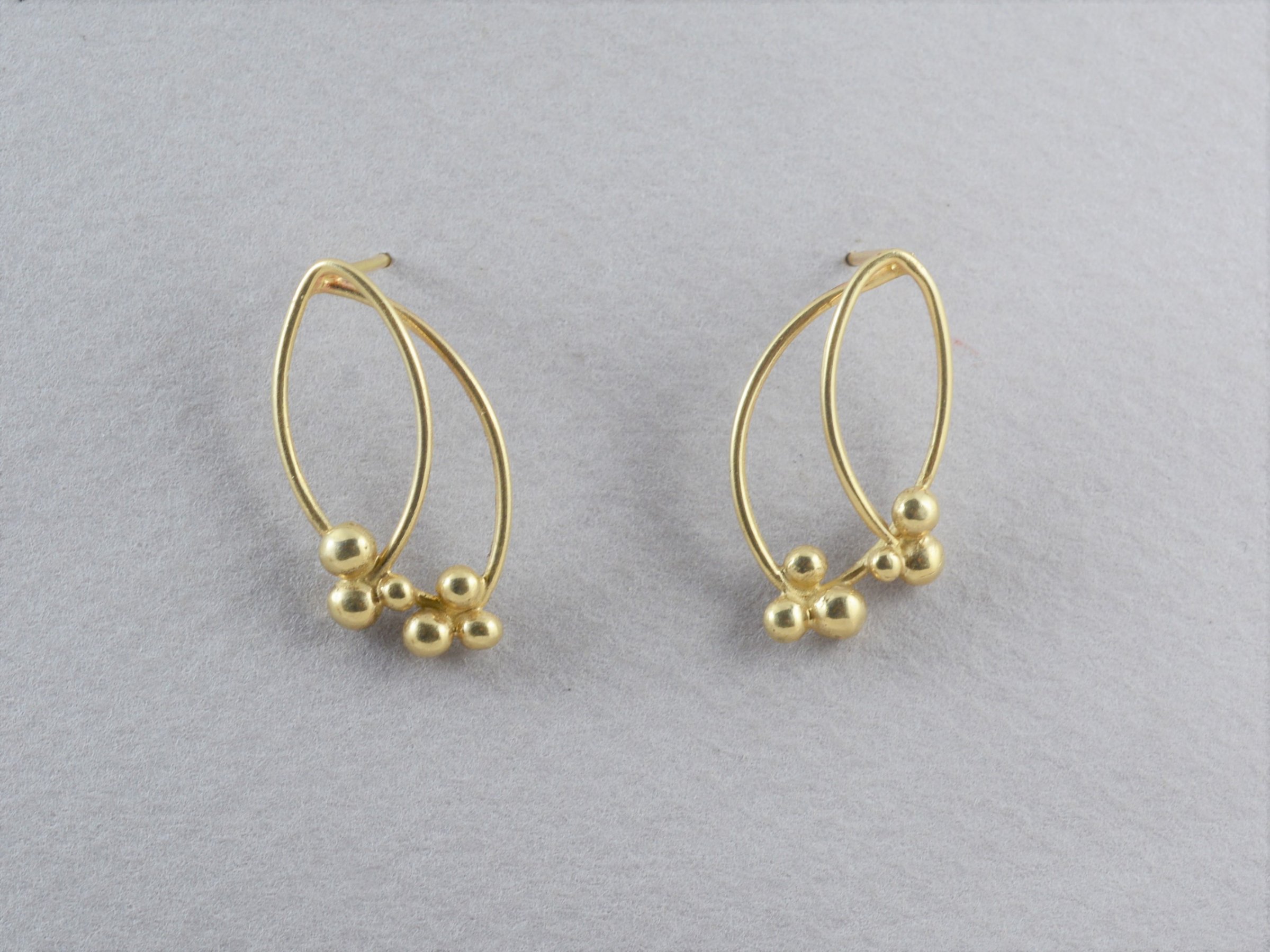 עגילי זהב 14 קראט צמודים מוטות וכדורים