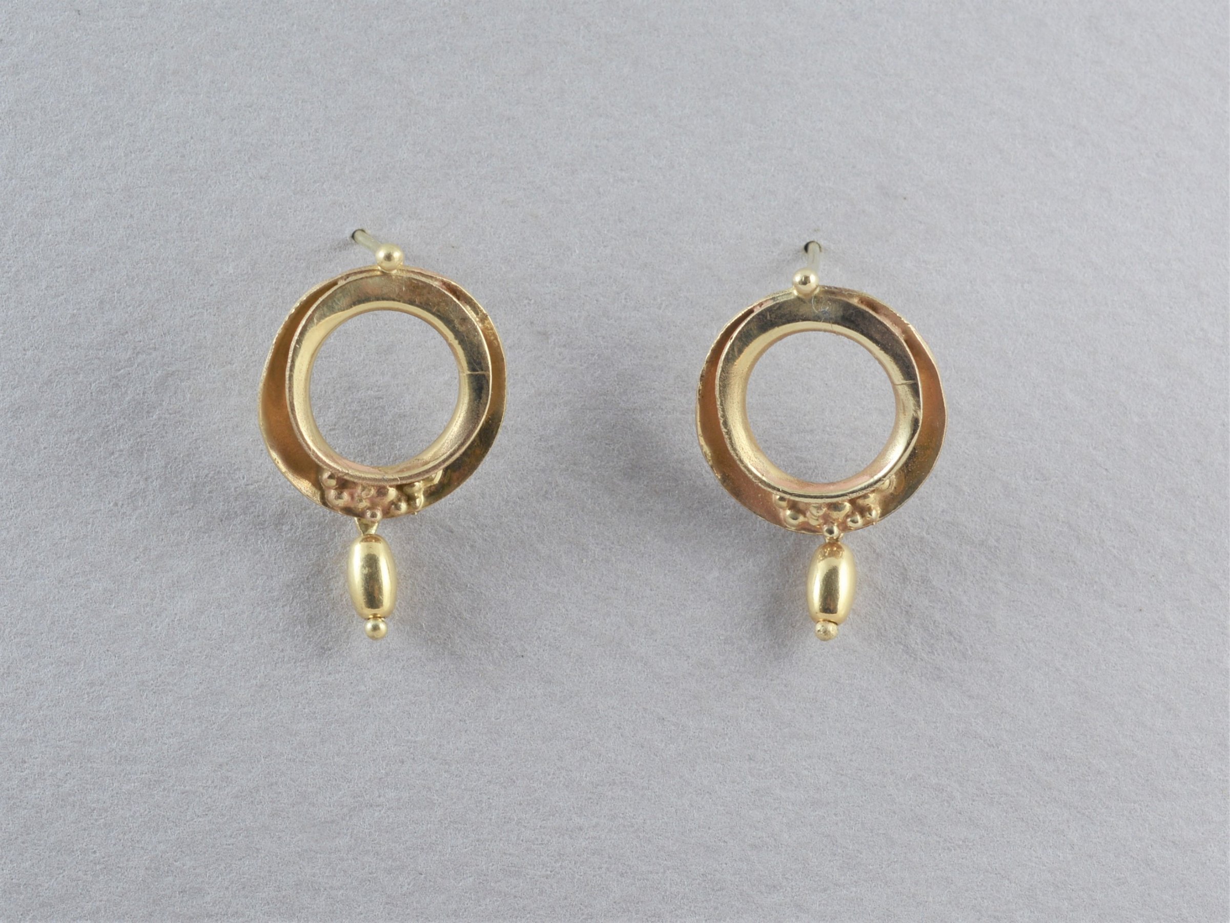 עגילי זהב 14 קראט צמודים עם חרוז תלוי