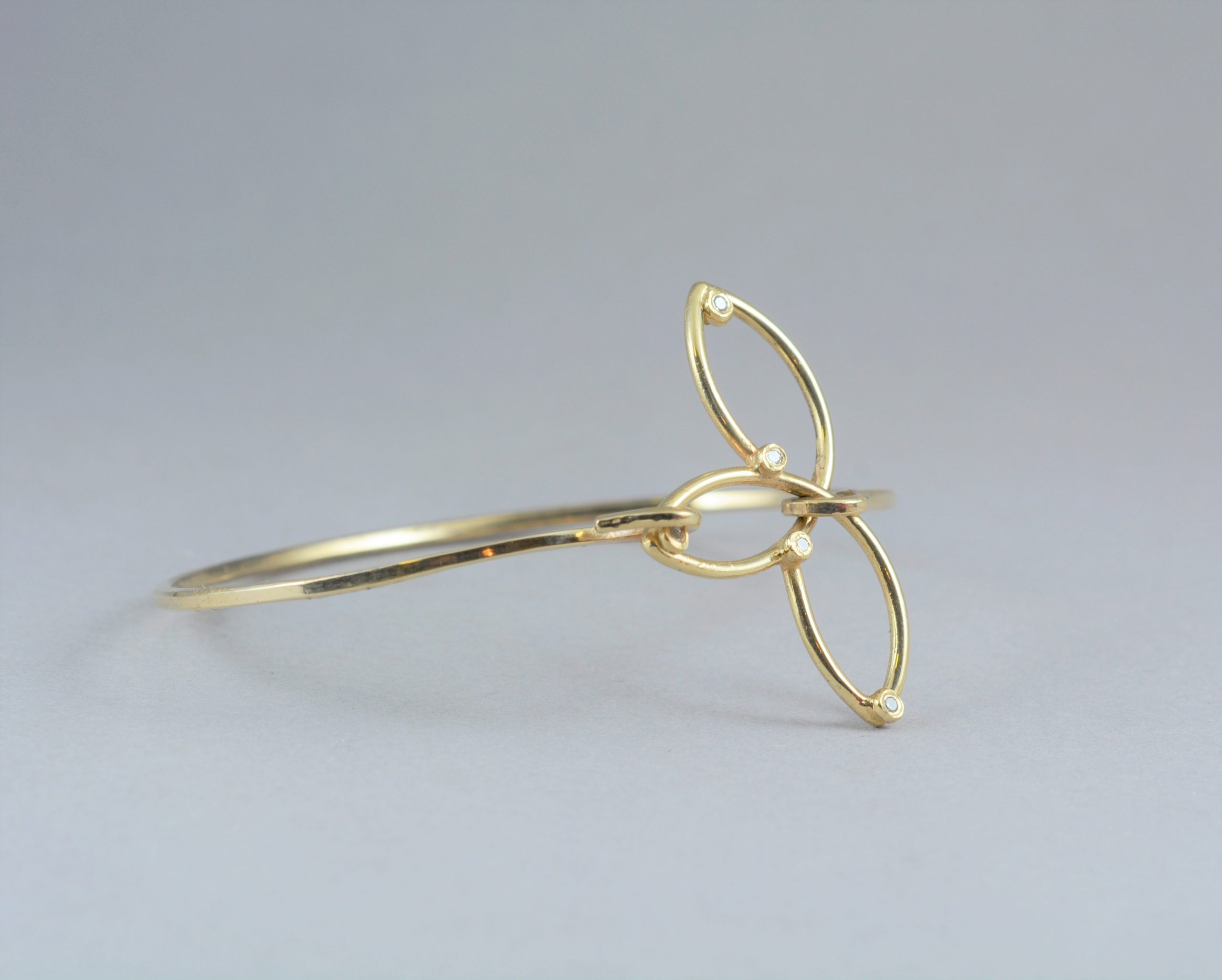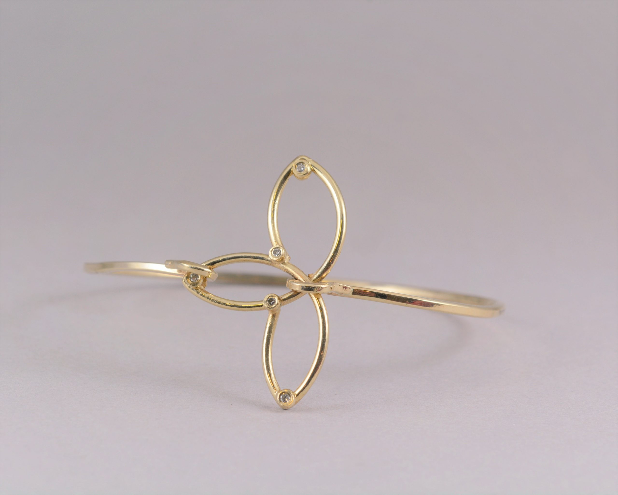 צמיד זהב 14 קראט עם סוגר ציר משובץ יהלומים