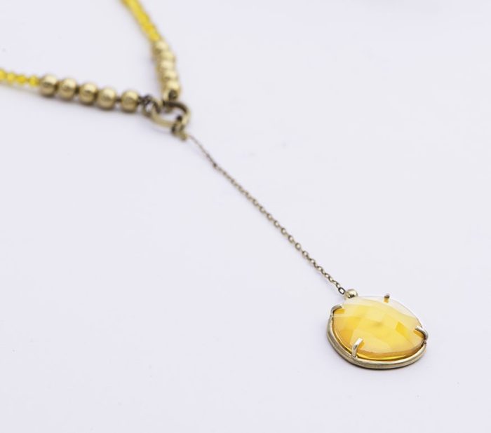 שרשרת אבני קלצדוני צהובות בשילוב זהב ואבן קלצדוני מרכזית